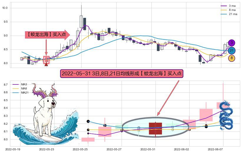 形态多维评估: ⚀ 2022-06-06日显现 8日-13日-21日均线 【金蜘蛛】买入点 看多信号,后市看涨,买入