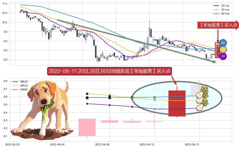 形态多维评估: ⚀ 2022-08-11日显现 20日-30日-60日均线 【旱地拔葱】买入点 看多信号,后市看涨,买入