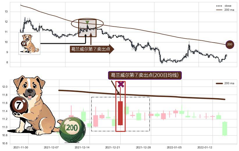 形态多维评估: ⚀ 2021-12-21-日显现 葛兰威尔均线 200日均线 第⑦卖出点 下降趋势的中继信号,后市看跌,卖出信号