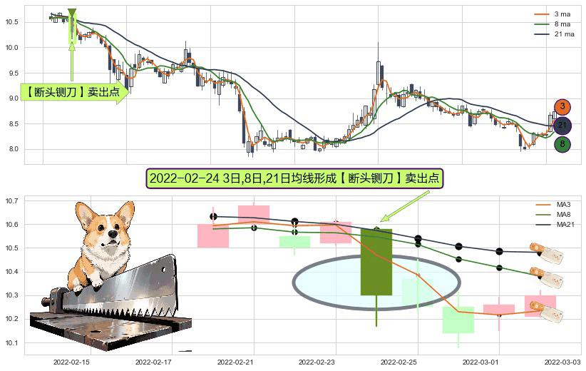 形态多维评估: ⚀ 2022-02-24日显现 3日-8日-21日均线 【断头铡刀】卖出点 看空信号,后市看跌,卖出