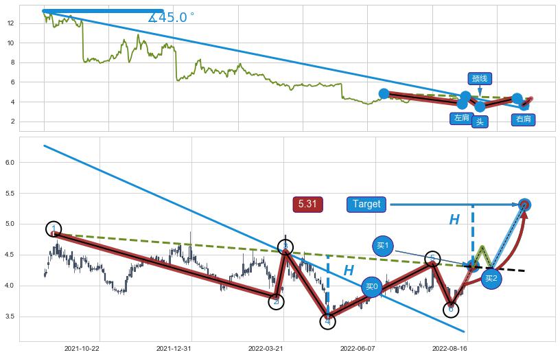 ➣ AI预测: 假定反转启动后, 第❶目标位置(2022-12-28, 4.47)