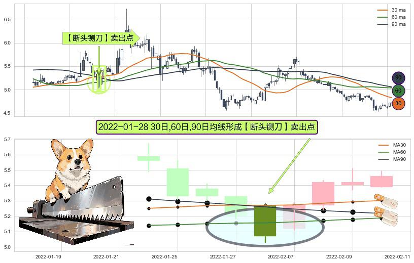 形态多维评估: ⚀ 2022-01-28日显现 30日-60日-90日均线 【断头铡刀】卖出点 看空信号,后市看跌,卖出