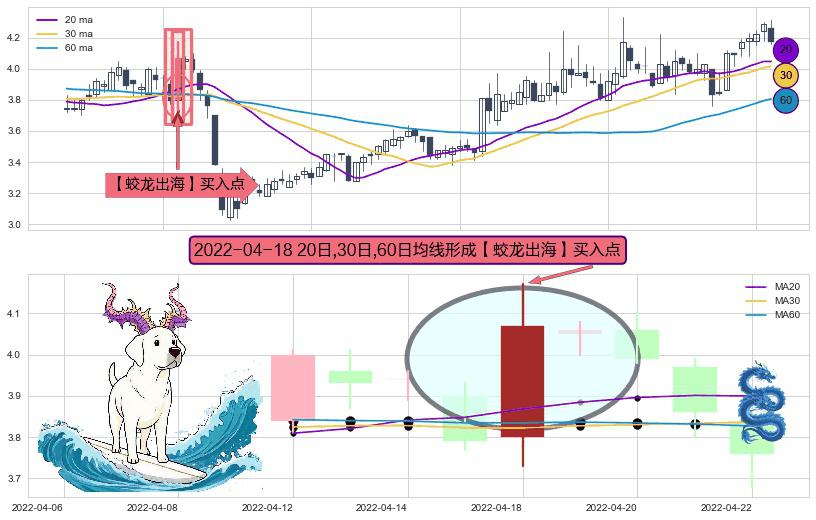 形态多维评估: ⚀ 2022-04-18日显现 20日-30日-60日均线 【蛟龙出海】买入点 看多信号,后市看涨,买入