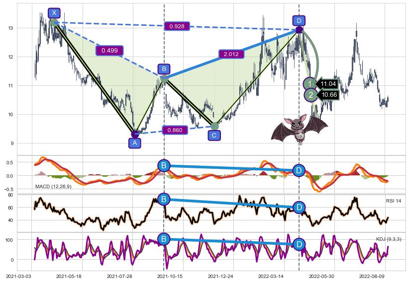 ➣ 已完成【蝙蝠】形态起点X: 2021-04-02, 终点D: 2022-04-06, 共244交易日