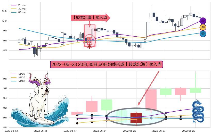 ⚀ 2022-06-23日显现 20日-30日-60日均线 【蛟龙出海】买入点 看多信号,后市看涨,买入