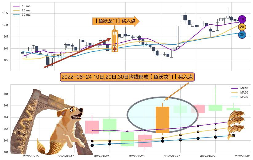 ⚀ 2022-06-24日显现 10日-20日-30日均线 【鱼跃龙门】买入点 看多信号,后市看涨,买入