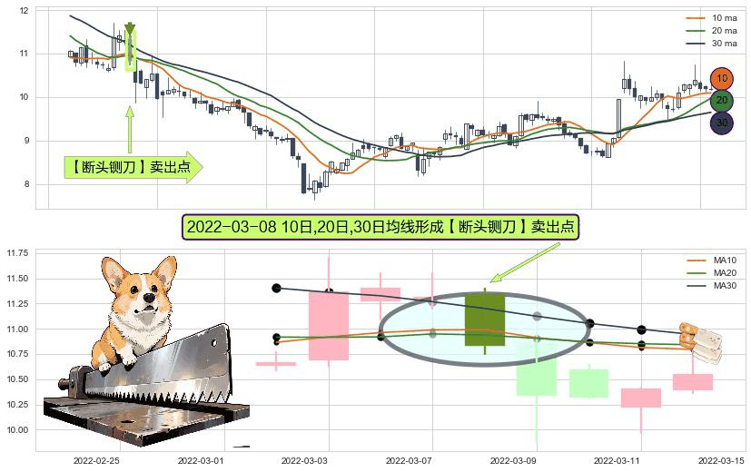 ⚀ 2022-03-08日显现 10日-20日-30日均线 【断头铡刀】卖出点 看空信号,后市看跌,卖出
