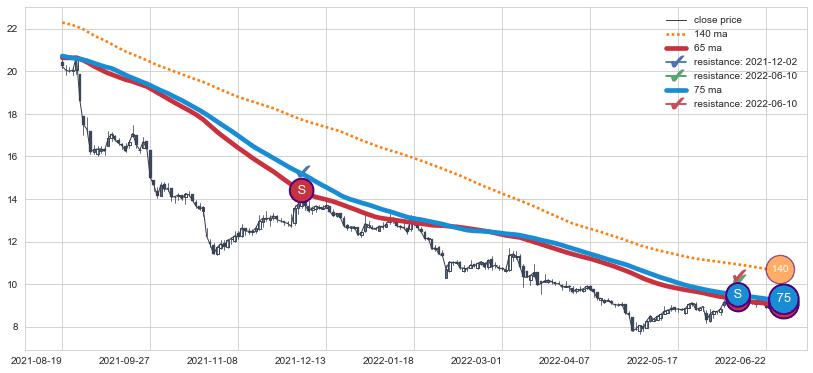 ➣ 历史趋势中共发现10处重要支撑阻力位,其中关键支撑位8处, 关键阻力位2处