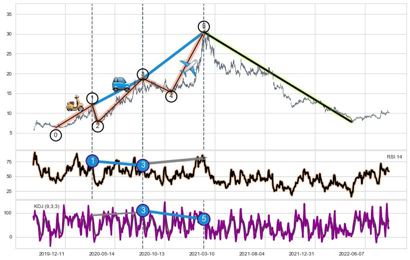 ➣ 第三,五驱动浪动能呈现递进增强,走势出现【中继】,中继程度较大