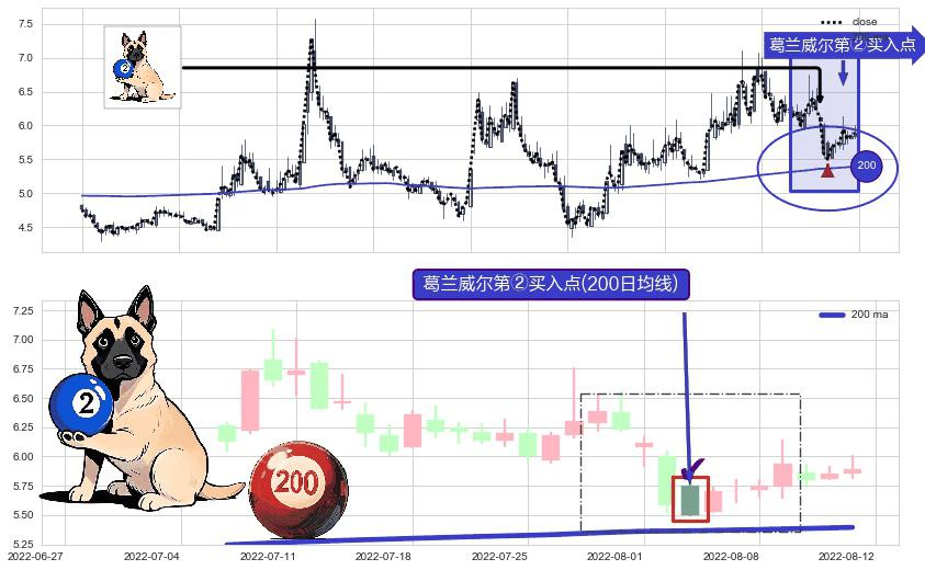 形态多维评估: ⚀ 2022-08-03-日显现 葛兰威尔均线 200日均线 第②买入点 上升趋势的中继信号,后市看涨,买进信号