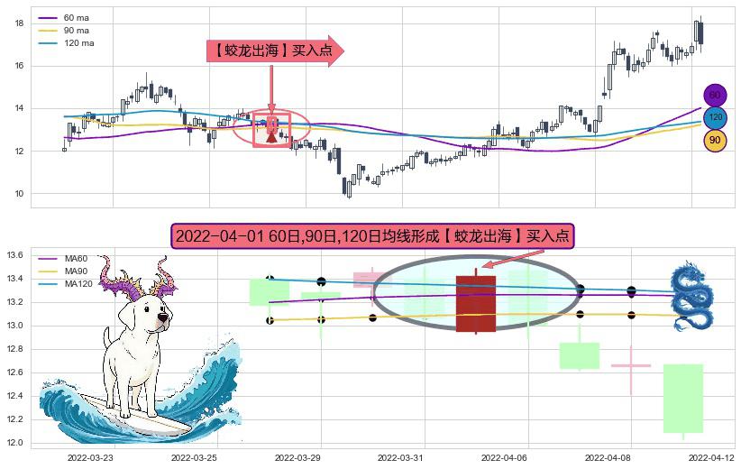 ⚀ 2022-04-01日显现 60日-90日-120日均线 【蛟龙出海】买入点 看多信号,后市看涨,买入