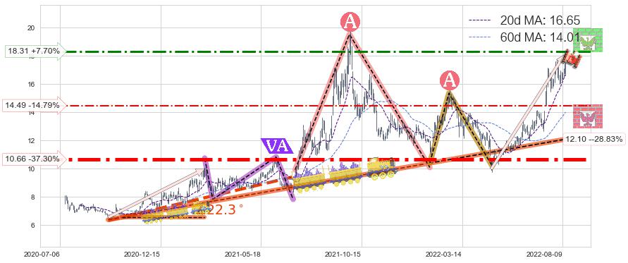 ♘ 阻力价格位18.31,可信任强度56.42%,距离最后交易2022-08-12形成的收盘价格17.00相差 +7.70%