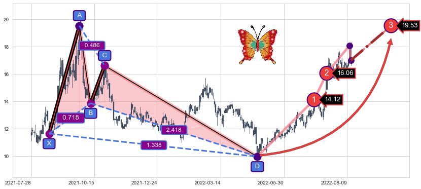 ➣ 已完成【蝴蝶】形态起点X: 2021-08-17, 终点D: 2022-04-26, 共166交易日