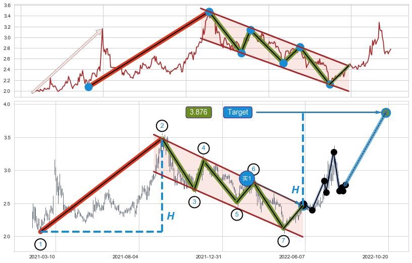 ➣ 最小中继整理涨幅→𝐇: 1.4100 (𝐇旗杆的长度:旗杆起点→顶点)