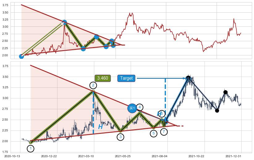 ➢ 【买1】: 激进型 买点 →(2021-07-30: 2.465 )形成突破上升【对称】三角形整理【整理】形态