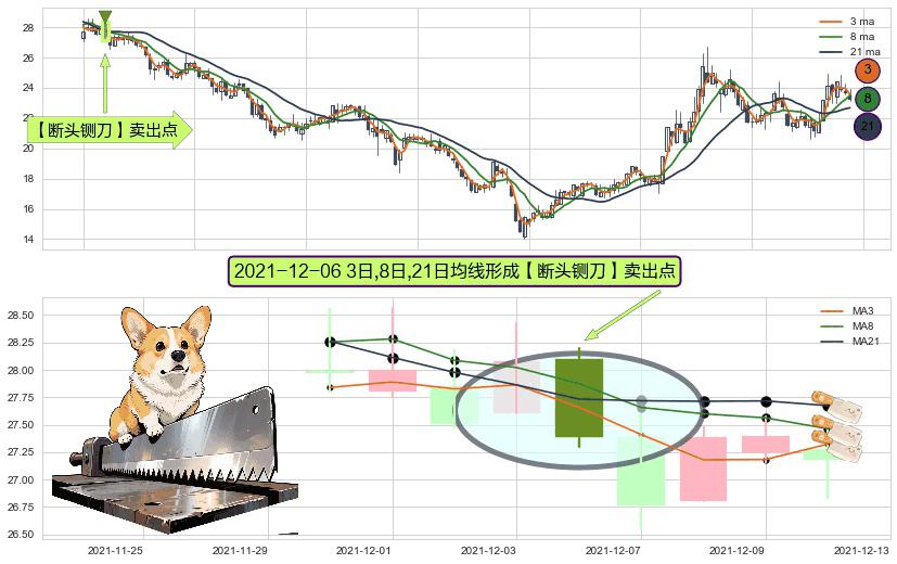 形态多维评估: ⚀ 2021-12-06日显现 3日-8日-21日均线 【断头铡刀】卖出点 看空信号,后市看跌,卖出