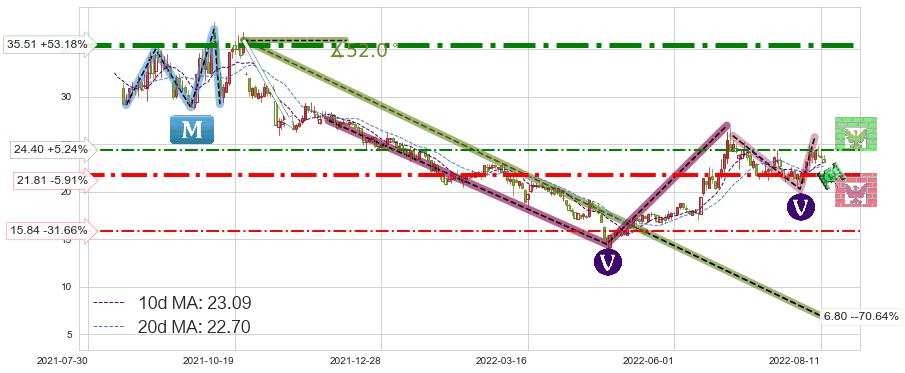 ♘ 阻力价格位24.40,可信任强度53.40%,距离最后交易2022-08-12形成的收盘价格23.18相差 +5.24%