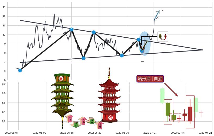 ➣ 【买2】: 保守型 买点 →(2022-08-02: 9.41 )形成上升【对称】三角形整理突破后的【回抽确认】