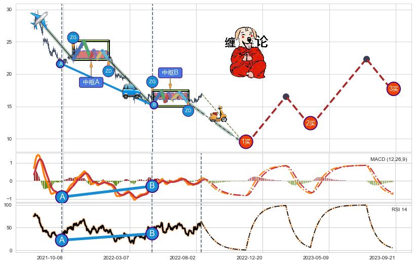 | 2 🅚:【断头铡刀】卖出点 ➕ ☯️:缠论中枢点下降缠中枢B破位后距离1买距离较远,随后猜想后续持续下跌(趋势跟踪) ☞ 看空信号 ⇥ 【均线】交织【图形】⇥ 综合量化分数: 36 | > |
