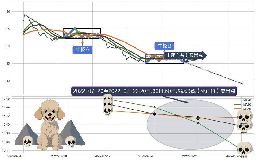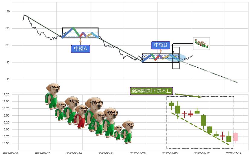 ➢ 【中枢B】:2022-04-26-2022-07-15,中枢由7笔构成,共55交易日, ZG=17.06, ZD=16.05