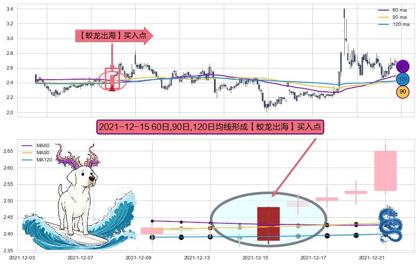 ⚀ 2021-12-15日显现 60日-90日-120日均线 【蛟龙出海】买入点 看多信号,后市看涨,买入