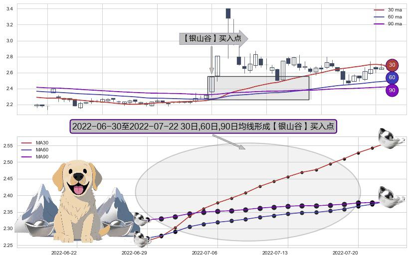 ⚀ 2022-07-01-日至2022-07-22-日显现 30日-60日-90日均线 【银山谷】买入点 看多信号,后市看涨,买入