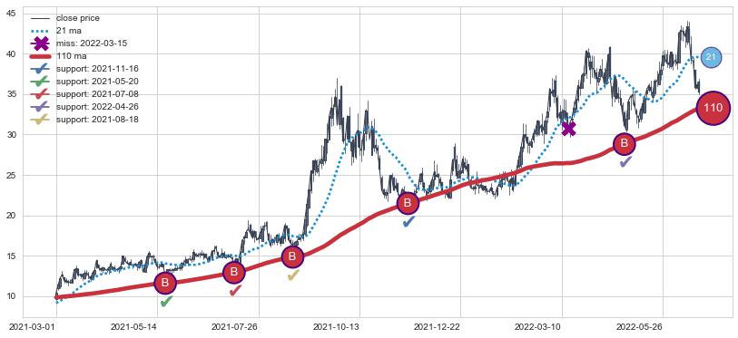 ⚂ 2022-07-14-日均线向下破位,2022-08-08-日重新上穿突破均线,均线支撑再次生效