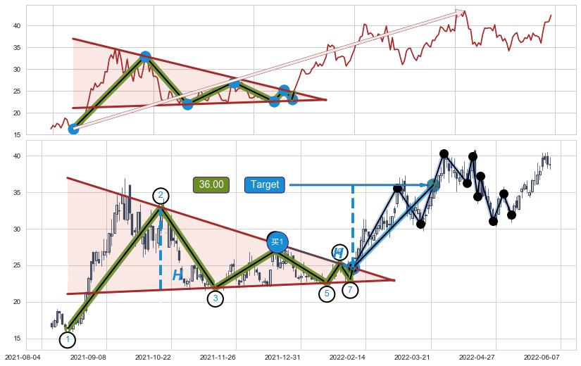 ➢ AI预测: 假定反转启动后, 第❷目标位置(2022-09-27, 37.90)