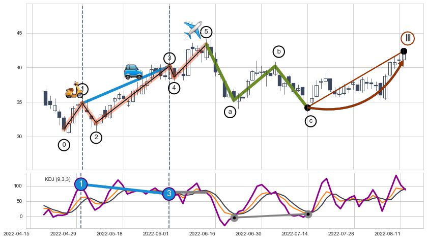 ➣ AI预测: 假定反转启动后, 第❸目标位置(2022-10-12, 34.20)