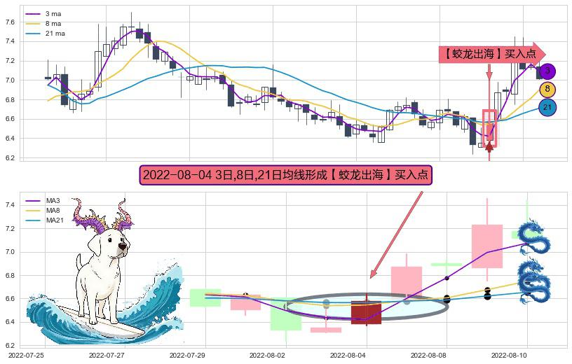 ⚀ 2022-08-04日显现 3日-8日-21日均线 【蛟龙出海】买入点 看多信号,后市看涨,买入
