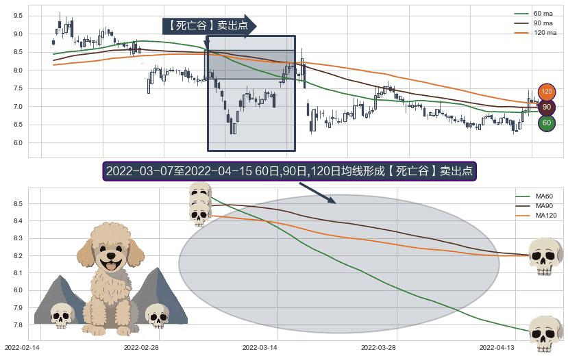 ⚀ 2022-03-08-日至2022-04-15-日显现 60日-90日-120日均线 【死亡谷】卖出点 看空信号,后市看跌,卖出