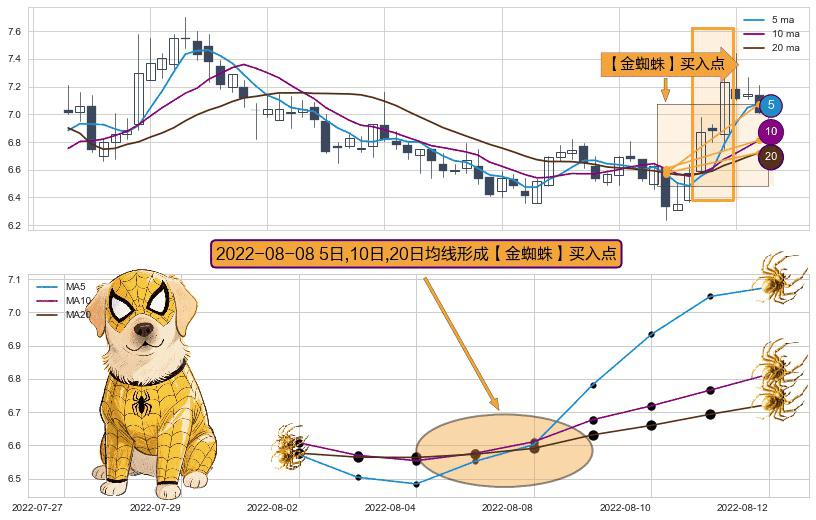 ⚀ 2022-08-08日显现 5日-10日-20日均线 【金蜘蛛】买入点 看多信号,后市看涨,买入