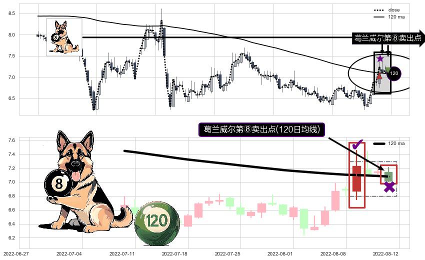 ⚀ 2022-08-12-日显现 葛兰威尔均线 120日均线 第⑧卖出点 下降趋势的中继信号,后市看跌,卖出信号