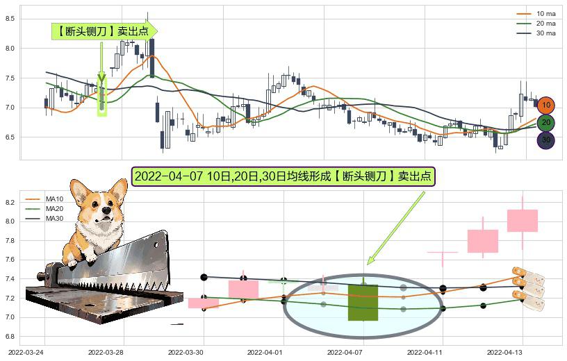 ⚀ 2022-04-07日显现 10日-20日-30日均线 【断头铡刀】卖出点 看空信号,后市看跌,卖出