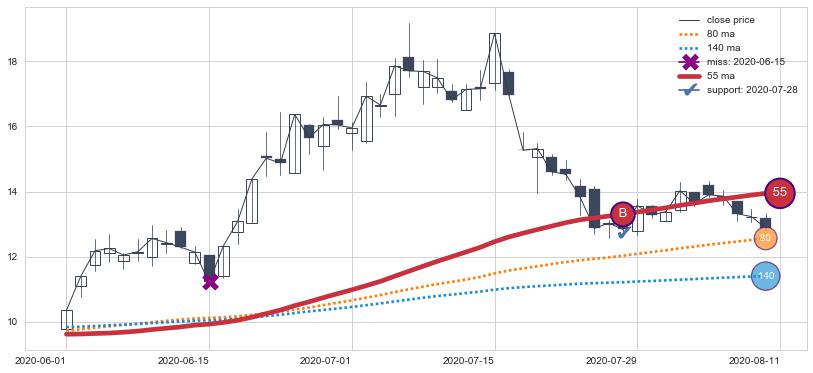 ⚂ 2022-08-09-日均线向上突破,2022-08-12-日重新下穿均线破位,均线阻力再次生效