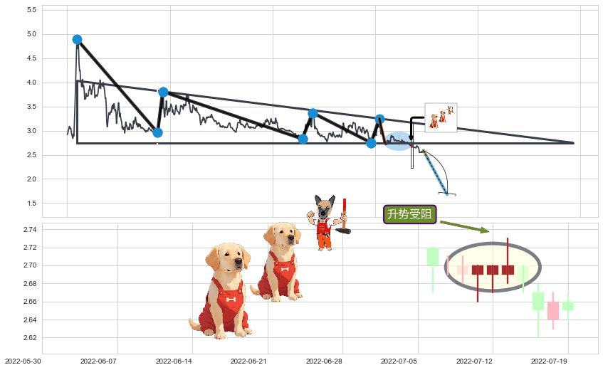 ➢ 【多方力量耗尽,空方打破攻守平衡点】下降三角形中继整理, 已在2022-04-25突破【支撑】颈线 2.750 →演变成下降通道