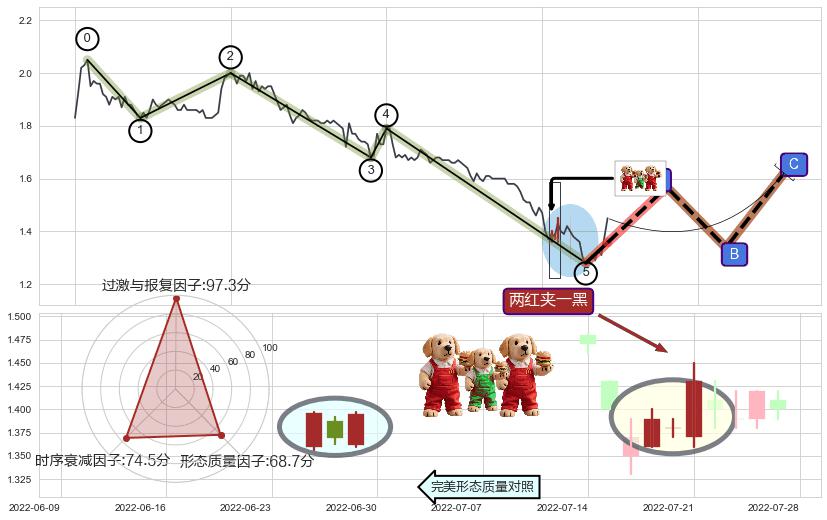 | 4 🅚:两红夹一黑 ➕ ☯️:缠论买卖点下降缠中枢AB形成后猜想拐点1买已到达,猜想后续持续拉升(均值回复) ☞ 看多信号 ⇥ 【🅚线】交织【图形】⇥ 综合量化分数: 51 | > |
