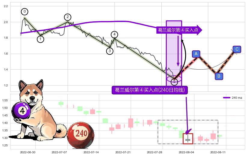 ➢ 智能识别已发生事件:缠论第一类买点【买❶】→(2022-08-03: 1.2800 )
