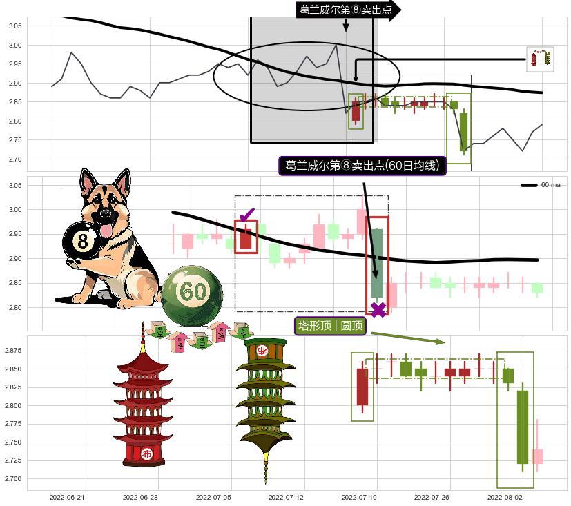 | 2 🅚:葛兰威尔第⑧卖出点 ➕ 📐:升楔型下行突破支撑位破位, 猜想持续下沉下跌,被突破的支撑位已变为阻力位 ☞ 看空信号 ⇥ 【均线】交织【图形】⇥ 综合量化分数: 32 | > |