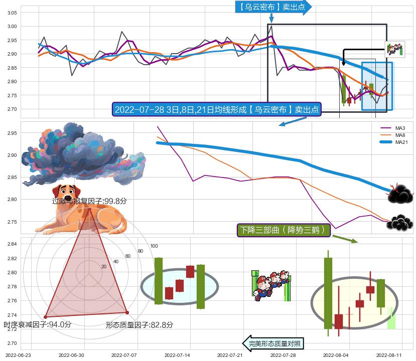 | 2 🅚:空方炮 ➕ 🎢:【乌云密布】卖出点均线组合卖出点信号形成后,猜想后续下行持续,下跌加速(趋势跟踪) ☞ 看空信号 ⇥ 【均线】交织【🅚线】⇥ 综合量化分数: 46 | > |