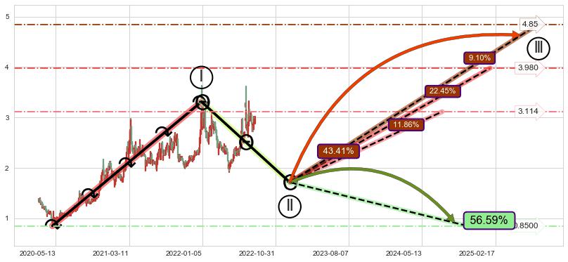 ➣ 【仅预测突破】最后价格:2.940与预测突破价格:1.9700→【空间临近】后续最小【反转】第一目标价格→(2023-03-29: 0.6376 )