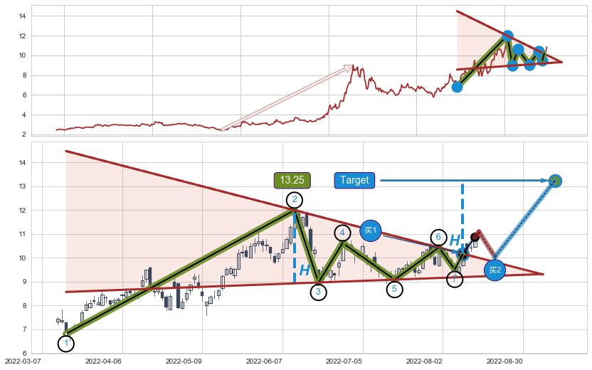 ➣ 【已确认突破】上升【对称】三角形整理 起点:2022-03-15,突破点:2022-08-09,形态共100交易日