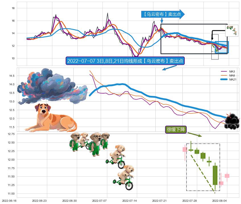 | 3 🅚:下跌螺旋桨 ➕ 🎢:【乌云密布】卖出点均线组合卖出点信号形成后,猜想后续下行持续,下跌加速(趋势跟踪) ☞ 看空信号 ⇥ 【均线】交织【🅚线】⇥ 综合量化分数: 49 | > |