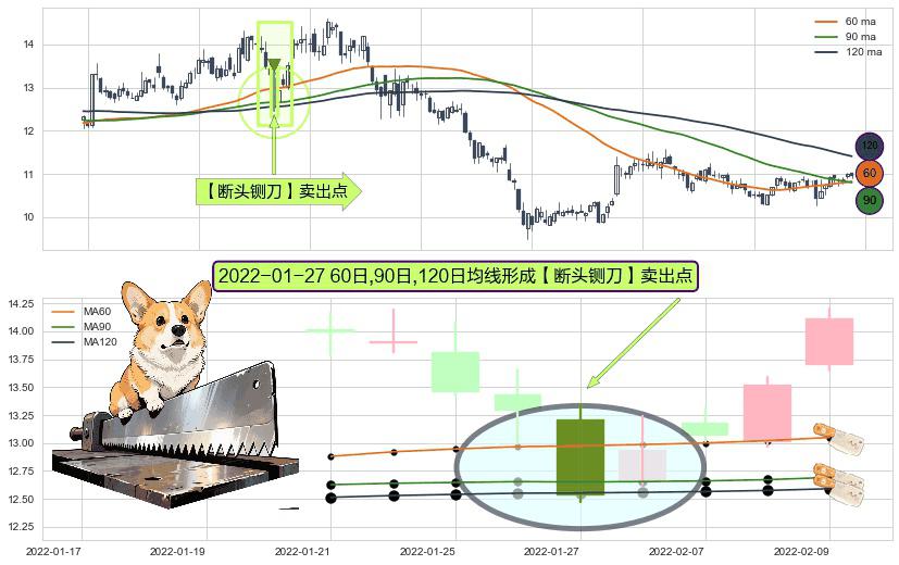 ⚀ 2022-01-27日显现 60日-90日-120日均线 【断头铡刀】卖出点 看空信号,后市看跌,卖出