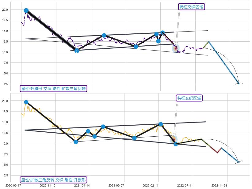 ➣ 【未确认突破,预测即将形成突破】【扩散】三角形反转起点:2021-02-08, 预测突破点:2022-04-26,形态共292交易日