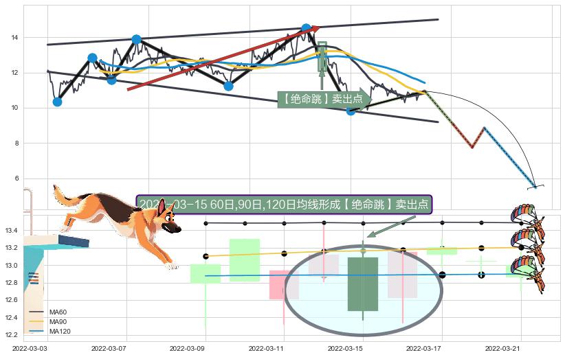 🦴 长线均值回复组合短线趋势跟踪[强阻力信号]2020-02-27-2022-06-14下跌趋势依然成立(下跌趋势跟踪依然存在),短线价格略微上行反弹(均值回复猜想),即将接近下跌趋势提供的未破位阻力价格:11.71。