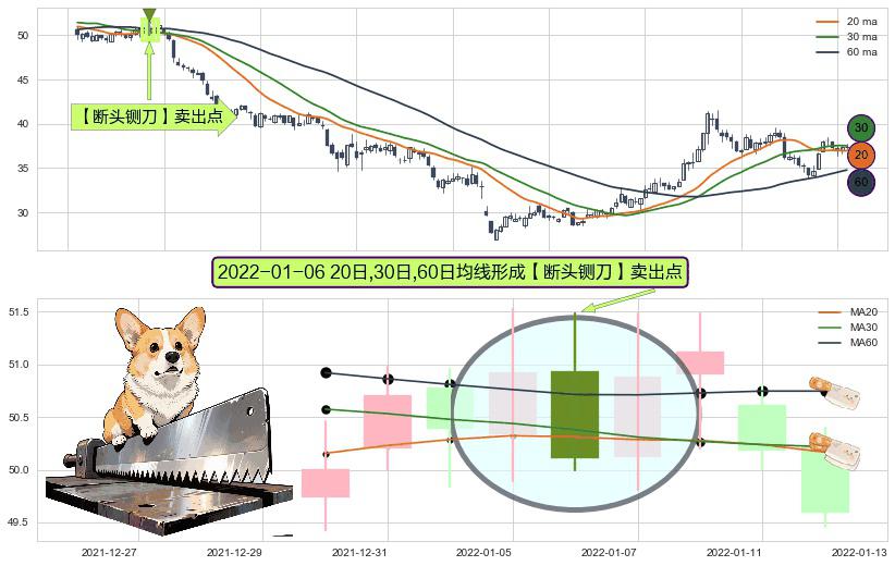 形态多维评估: ⚀ 2022-01-06日显现 20日-30日-60日均线 【断头铡刀】卖出点 看空信号,后市看跌,卖出