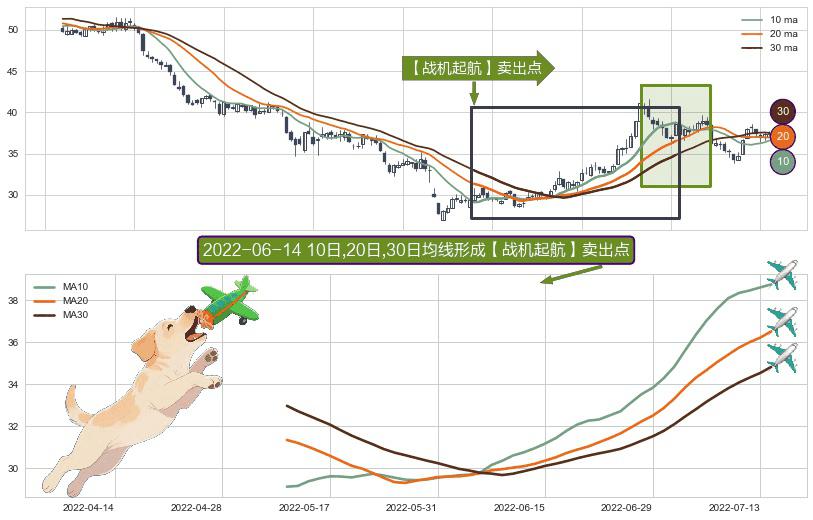 形态多维评估: ⚀ 2022-05-11日-2022-07-14日显现 10日-20日-30日均线 【战机起航】卖出点 看空信号,后市看跌,卖出