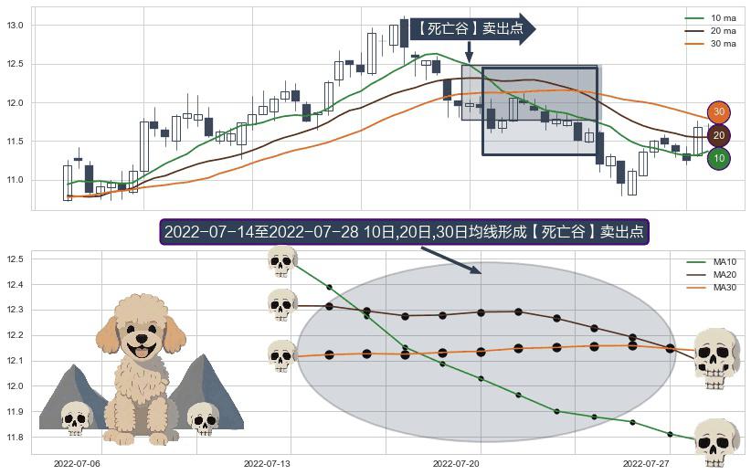 形态多维评估: ⚀ 2022-07-15-日至2022-07-28-日显现 10日-20日-30日均线 【死亡谷】卖出点 看空信号,后市看跌,卖出
