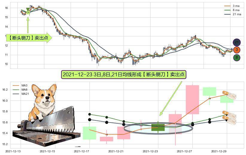 形态多维评估: ⚀ 2021-12-23日显现 3日-8日-21日均线 【断头铡刀】卖出点 看空信号,后市看跌,卖出